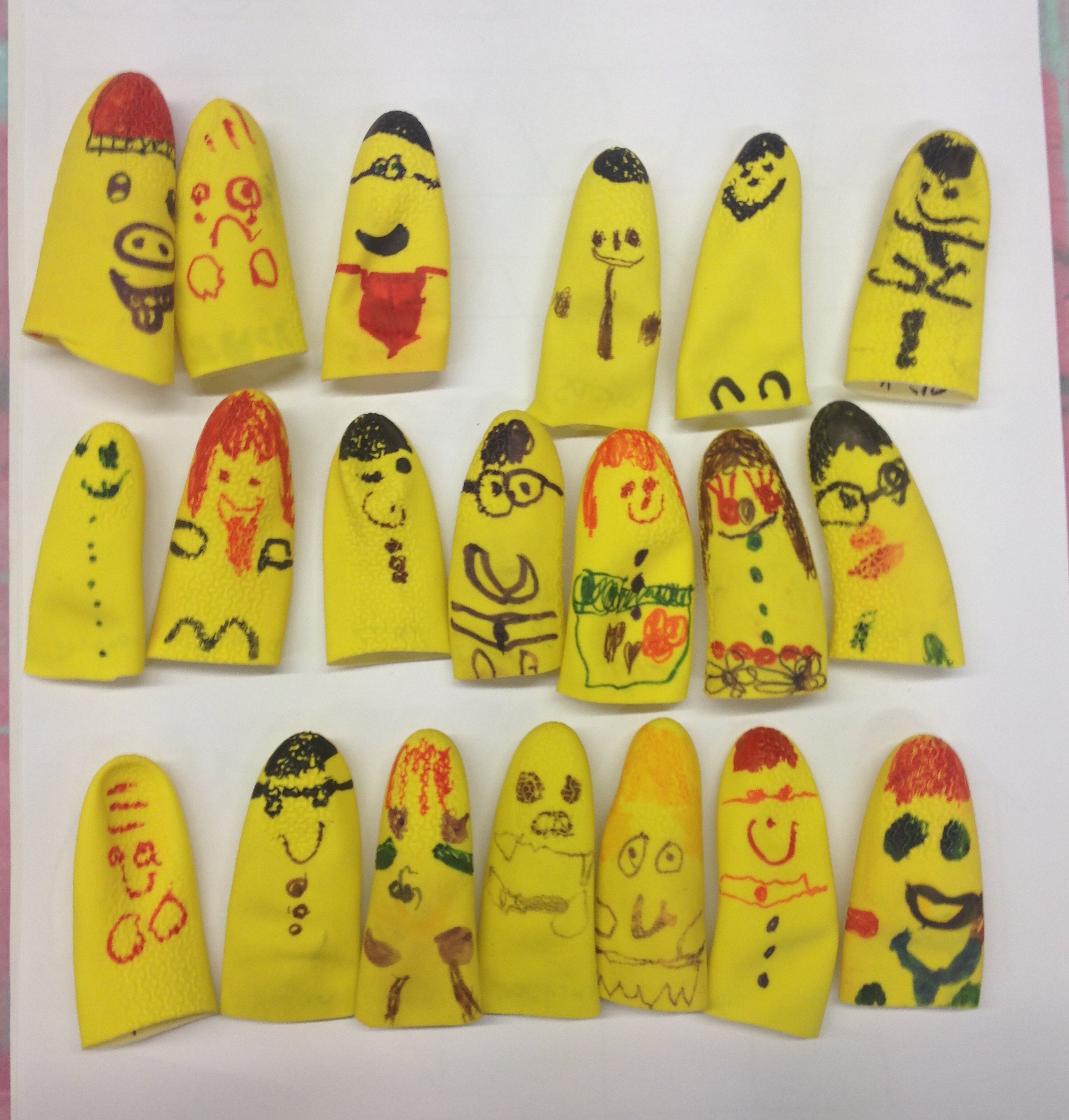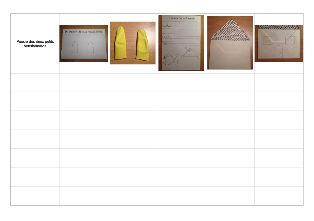 Voici une activité que j'ai mis en place en stage que les enfants ont adoré. Les élèves ont confectionné des marionnettes en gants de caoutchouc (de vaisselle). Ils ont ainsi pu réciter la comptine avec les gestes. Ils ont également fait une maison pour que les bonshommes "rentrent à la maison", comme c'est dit dans la comptine.