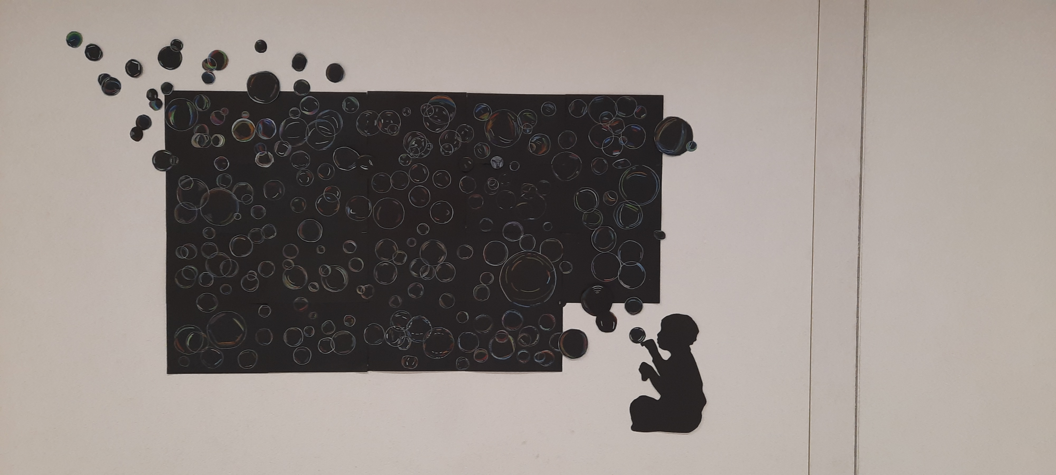 Des petites bulles de savon que les élèves ont adorés dessiner.... Vous trouverez une photo du résultat du travail de mes élèves.