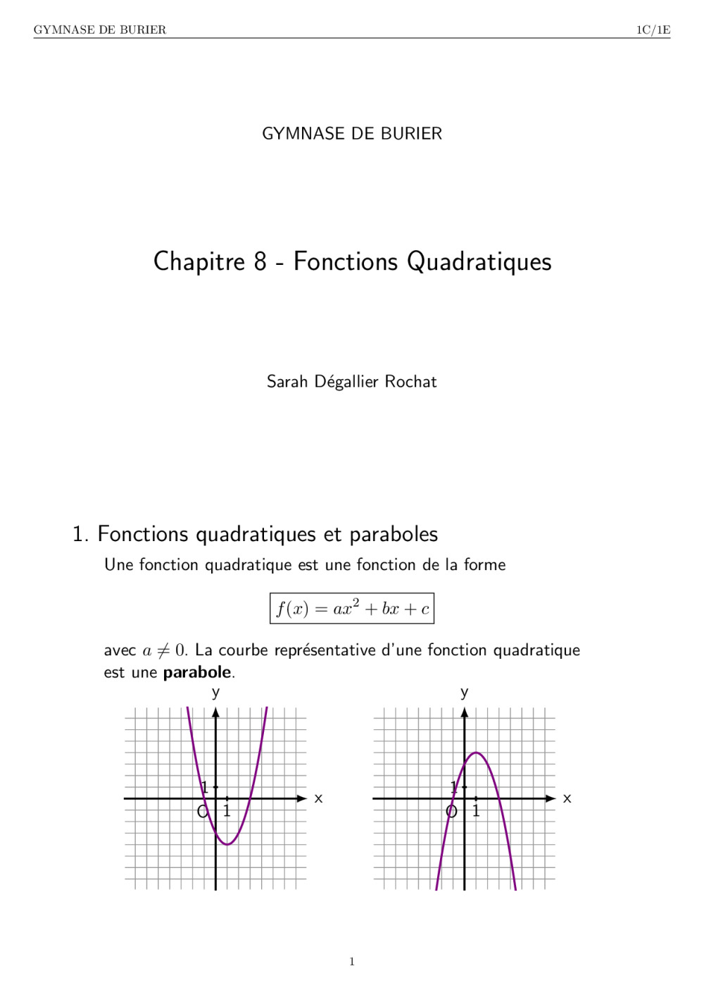 Fonctions quadratiques (1C/1E) : Cours - Sarah Rochat