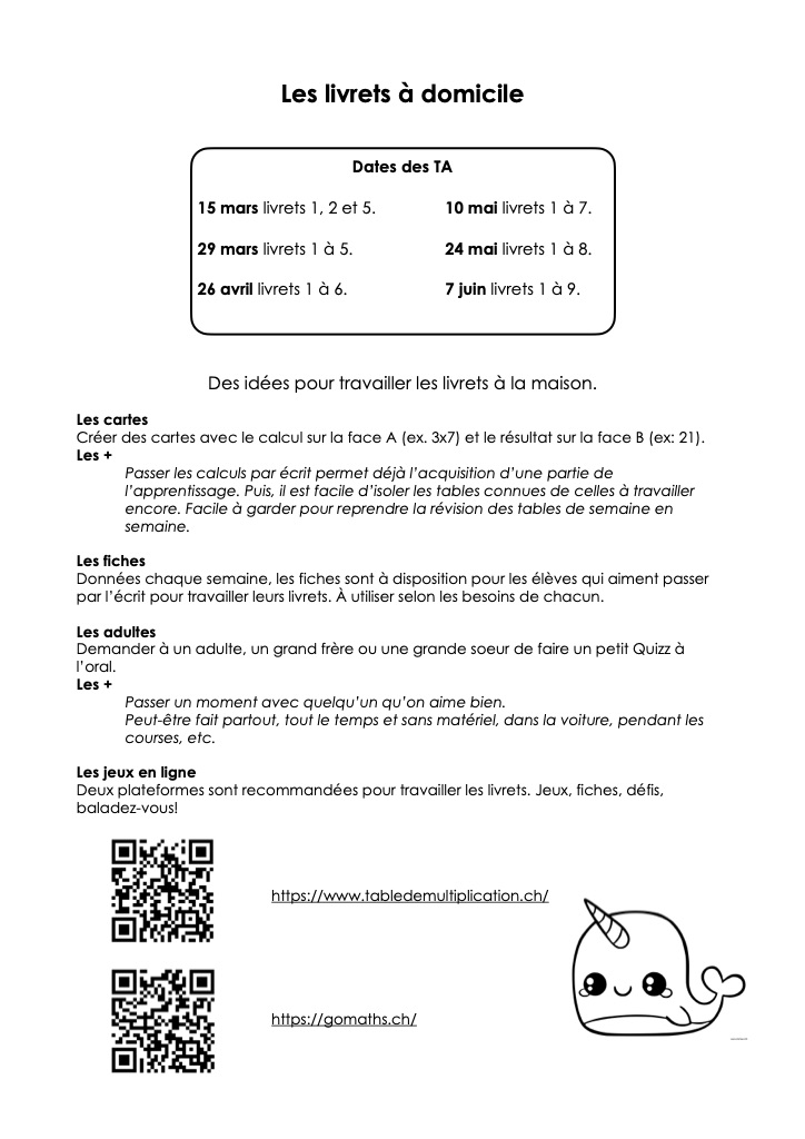 D'autre part, des pistes pour travailler les livrets à la maison.