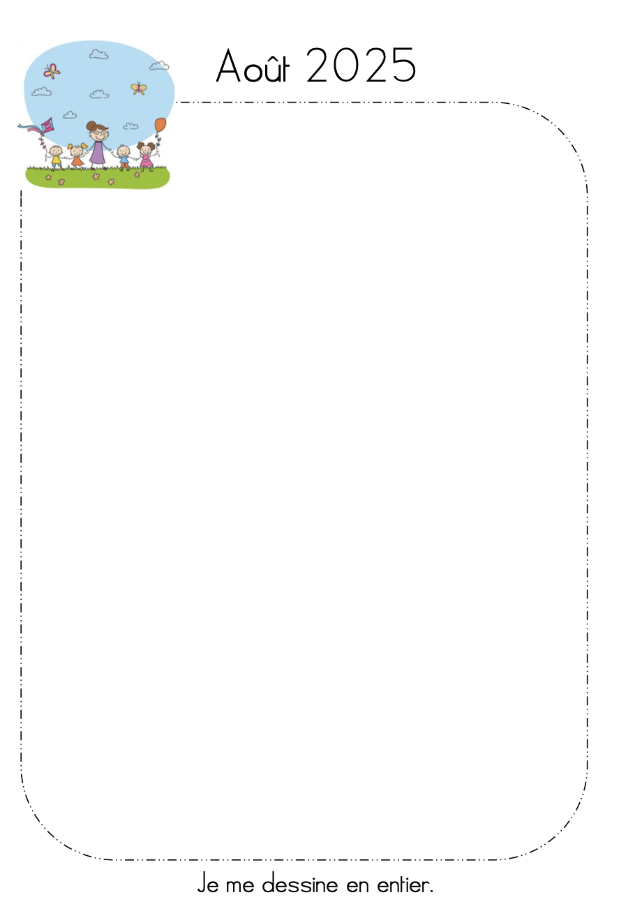 Chaque mois, l'élève doit se dessiner avec les consignes données et écrire son prénom.