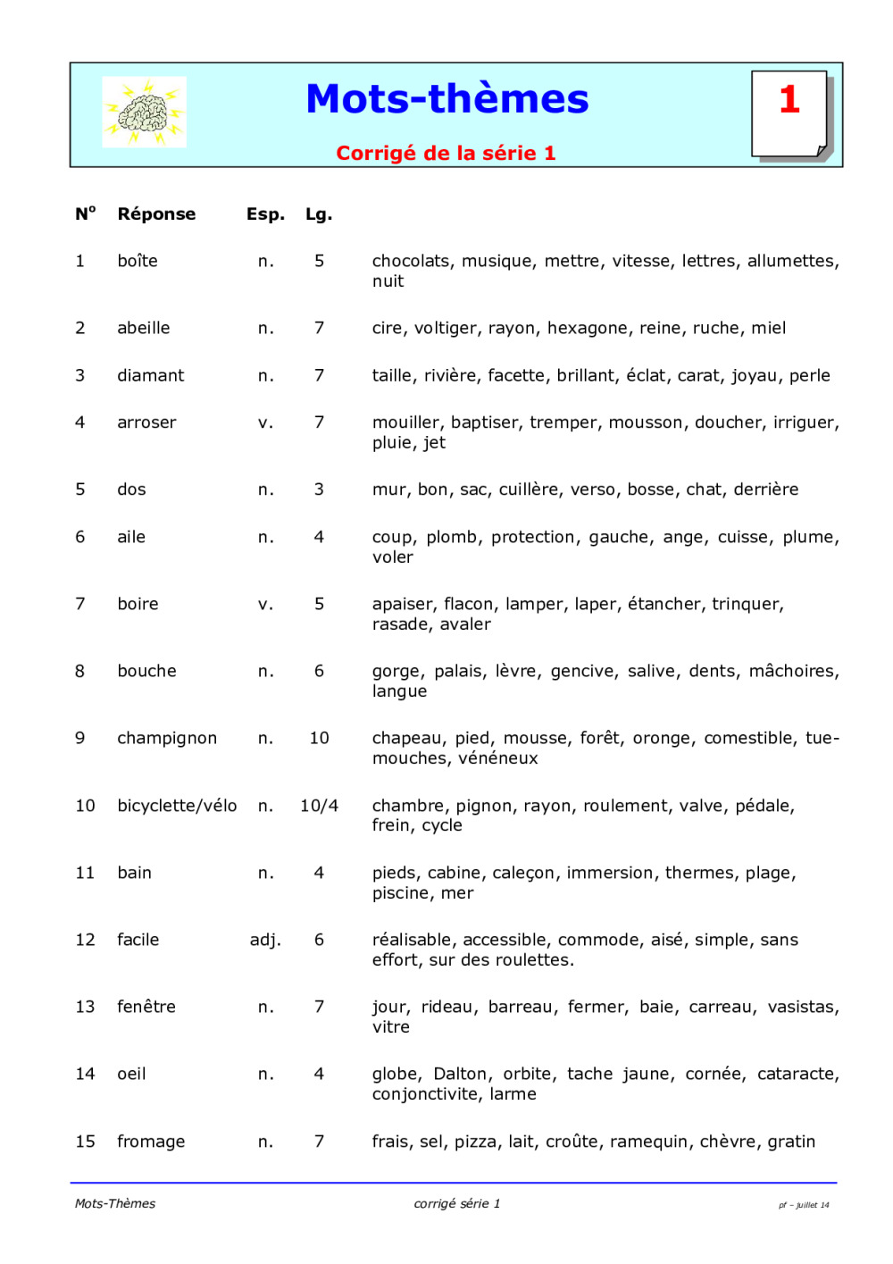 On doit donc trouver un mot (ici un nom) de 5 lettres qui "ait un lien" avec TOUS les mots de la liste.