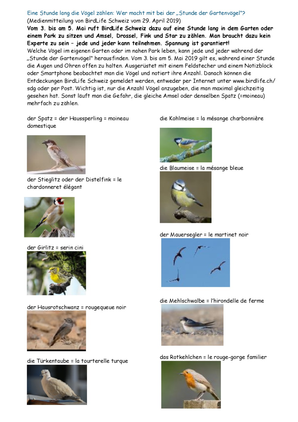 Oiseaux de Suisse, Vögel der Schweiz Ressource N°4484 partagée le 01.05.19 à 14:57 - Mise à jour le 29.01.26 à 03:42 Principaux oiseaux de Suisse. Voir aussi sur: https://www.birdlife.ch/fr Tout télécharger vogel.pdf vogel.pages vogel.pdf oiseaux.pdf