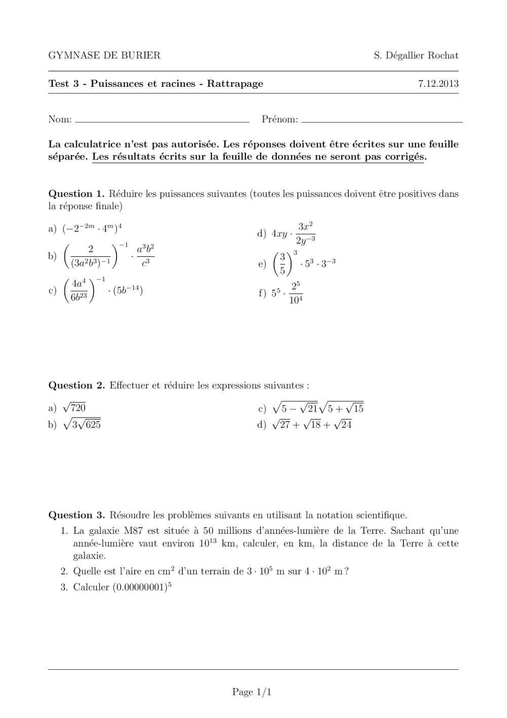 Ces tests préparatoires sur les puissances et racines font référence aux chapitres 3 de Sarah Rochat.