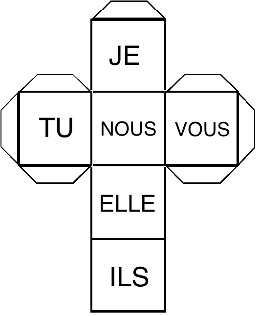 - Vous pouvez fabriquer des dés de verbes à l'aide du patron du cube
