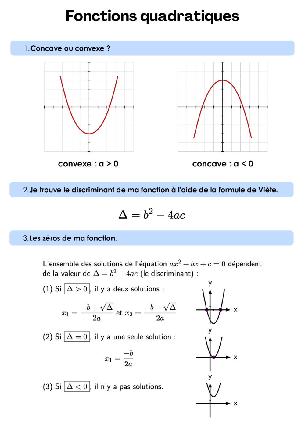 théorie + exercices sur les fonctions quadratiques - 11VP