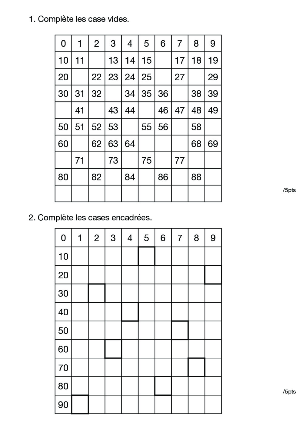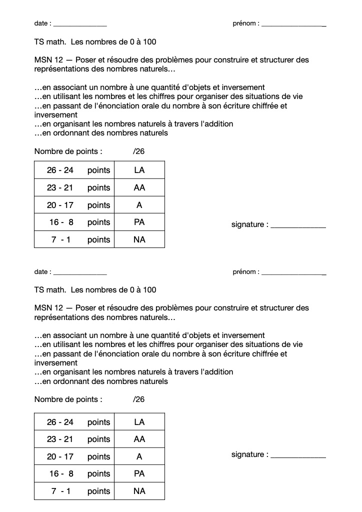 Test significatif les nombres de 0 à 100 nouveaux moyens/ 4P
