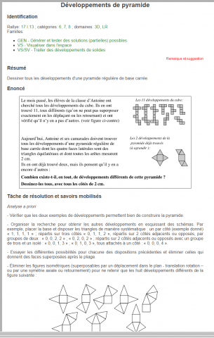Partagée le 17.03.21 à 05:27 Cette ressource analyse une tache à réaliser en classe : dessiner tous les développements d'une pyramide régulière de base carrée.