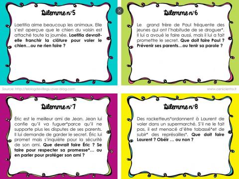 Voici un jeu de 36 cartes proposant 36 dilemmes moraux à discuter en classe, réalisé par les élèves de cycle 3 de l'école de Villegusien, plus une fiche d'observation.DILEMMES MORAUX: jeu de 36 cartes gratuit pour réfléchir en classe + une fiche d'observation du débat