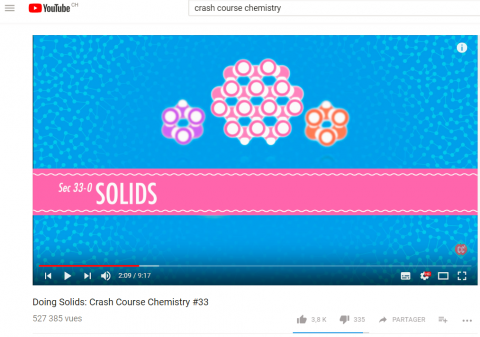 Le vaste sujet des solides est développé dans cet épisode. Les différents types de solides (cristallins, amorphes et sous-groupes) sont passés en revue, de même que leurs propriétés. Certaines propriétés des solides métalliques sont mentionnées et expliquées sur la base du modèle de la "mer d'électrons".