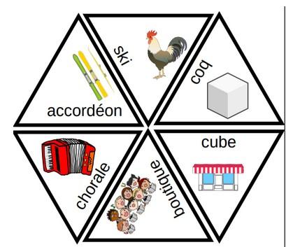 Partagée le 06.11.24 à 15:39 - Mise à jour le 06.11.24 à 15:52 Ces jeux de lecture se présentent sous forme de plusieurs triangles qui, accolés, forment un hexagone. Chaque hexagone travaille un son : les différentes graphies du son [ã], les différentes graphies du son [k], les différentes graphies du son [ɛ], les différentes graphies du son [s].