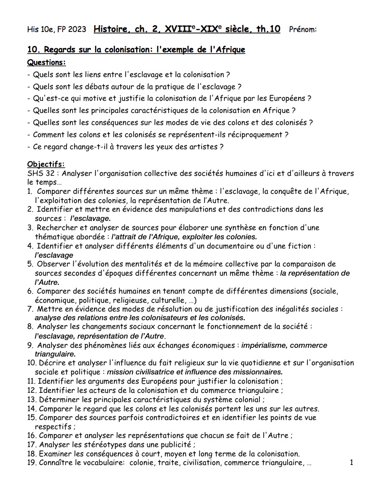Fiche d'accompagnement du livre 2023, objectifs et constat ÉGALEMENT fiche double-page pour début de 11e, car ils n'ont plus le livre de 10 mais que je fais un premier TS sur la colonisation de l'Afrique en début de 11 (J'avais gardé leur dossier de 10 pendant l'été et je n'ai pas de nouveaux élèves (...)