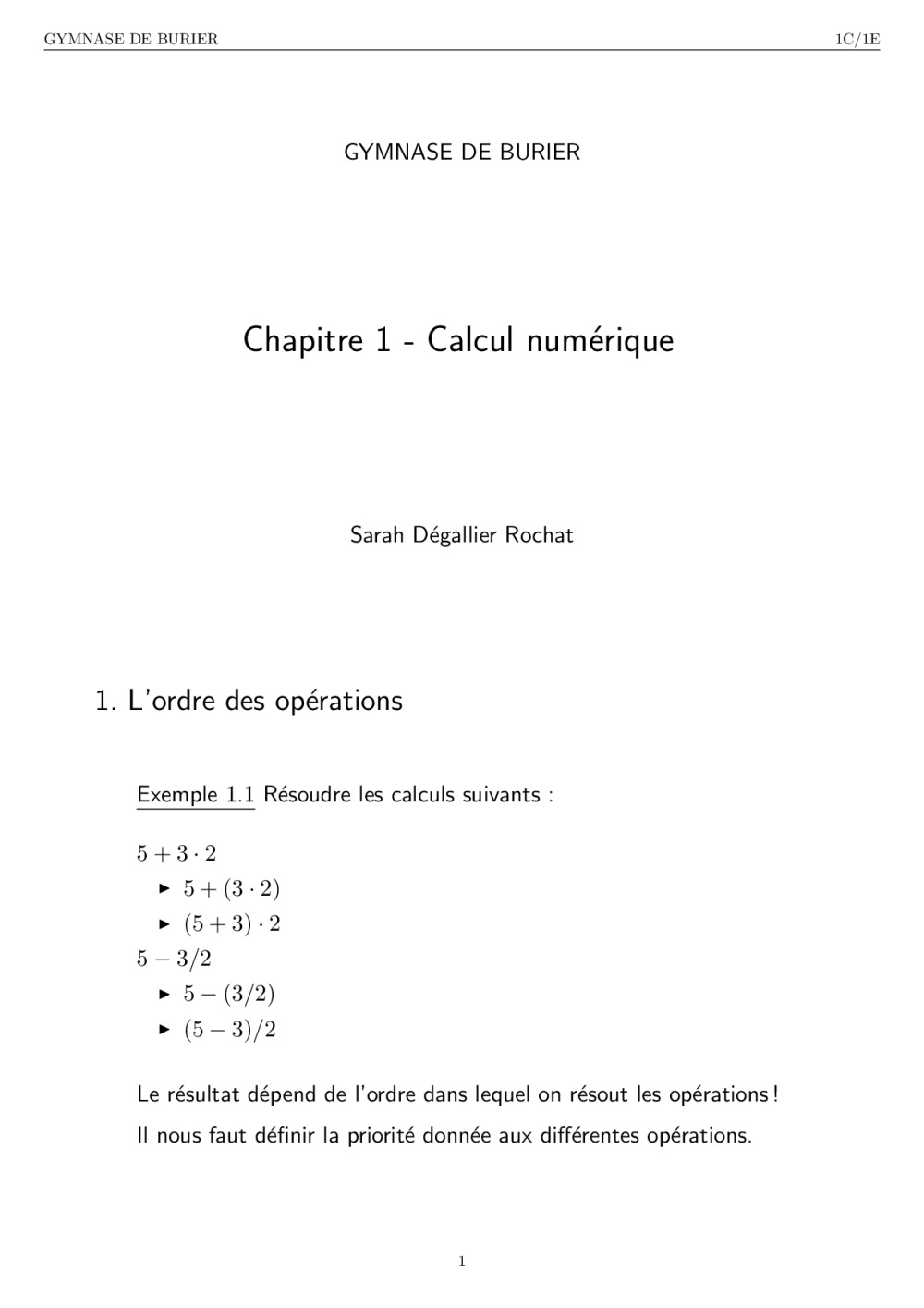 Calcul numérique (1C/1E) : Cours - Sarah Rochat