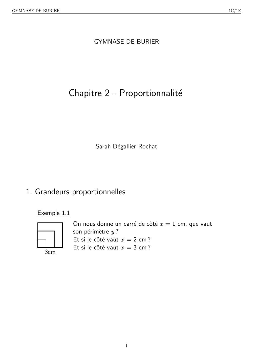 Proportionnalité (1C/1E) : Cours - Sarah Rochat