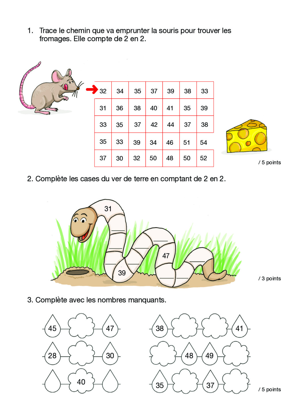 ordres croissant et décroissant, nombres pairs et impairs, dizaines et unités, compter de 2 en 2