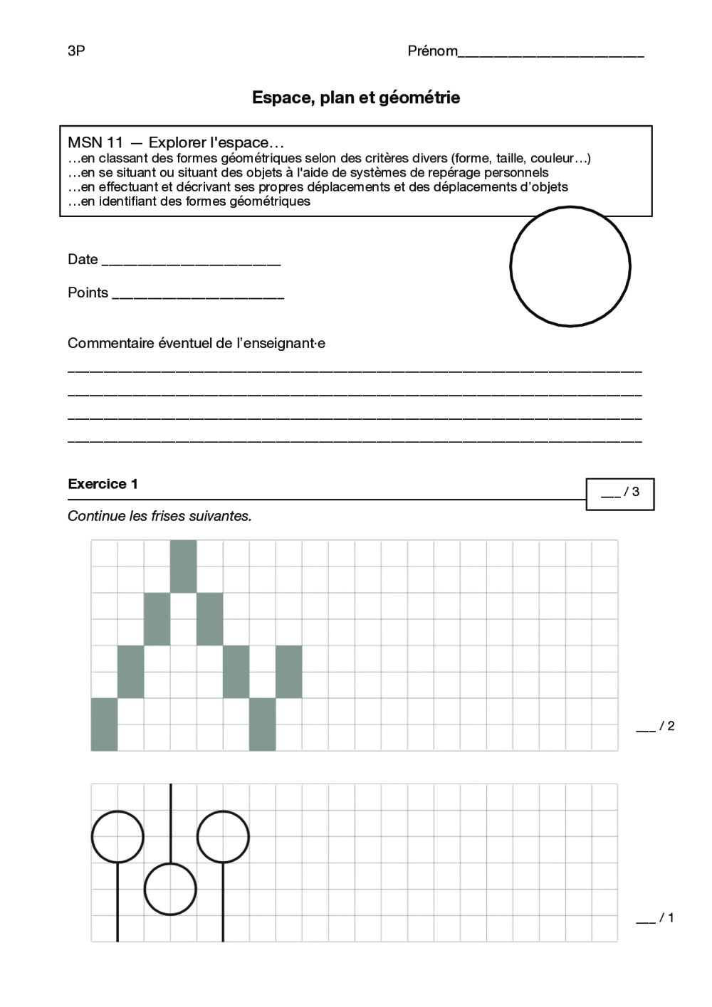Évaluation de mathématiques sur le thème de l'espace (MSN11) pour des 3P