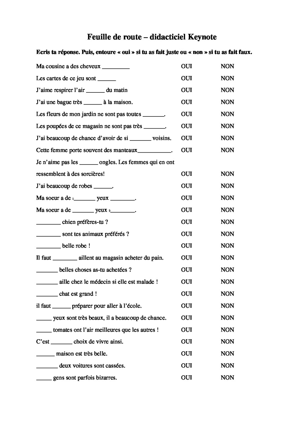 Programme d'exercices sur l'accord de l'adjectif et les homophones.
