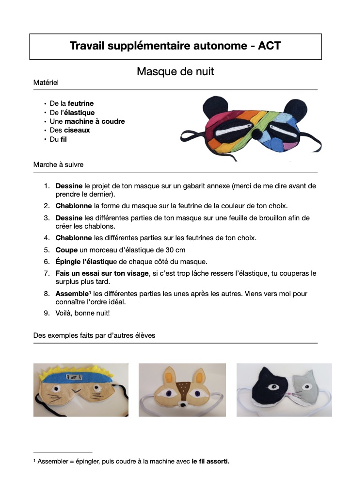 Marche à suivre ACT que j'utilise personnellement comme travail autonome pour les élèves avancés. *Les images sont prises de la réalisation d'une collègue, Christel Perroud, qui a fait ce travail avec ses élèves. Je n'ai que fait la marche à suivre. Merci à elle pour l'idée et bravo à ses élèves (...)