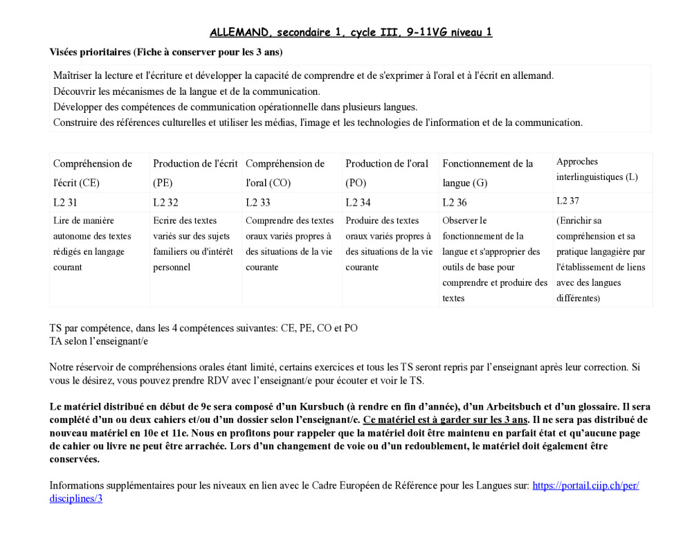 Fiche à distribuer aux élèves en début de 9e. (1 fiche par niveau (les 3 premières) et les mêmes plus détaillées (les 3 suivantes) pour l'enseignant). Modifée en 2025