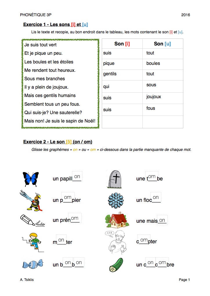 Français - Travailler les graphèmes "on" et "om" avec Pages