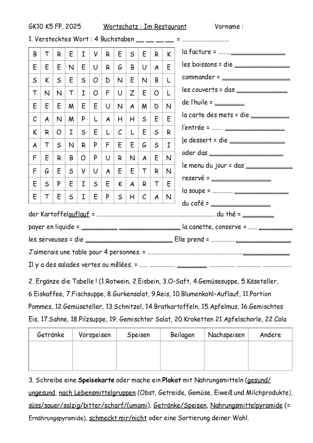 J'ai créé une fiche pour préparer les élèves pour le TS de comp. orale et un memory pour entraîner les noms des aliments en allemand.
