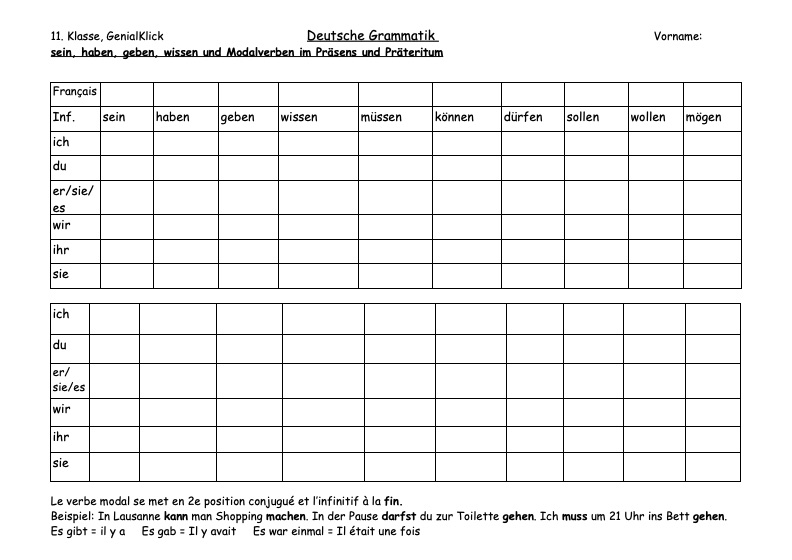 ALLEMAND VERBES AU PRÉSENT CARTES A PLASTIFIER (10 pages) + tableau récapitulatif *nouvelle version