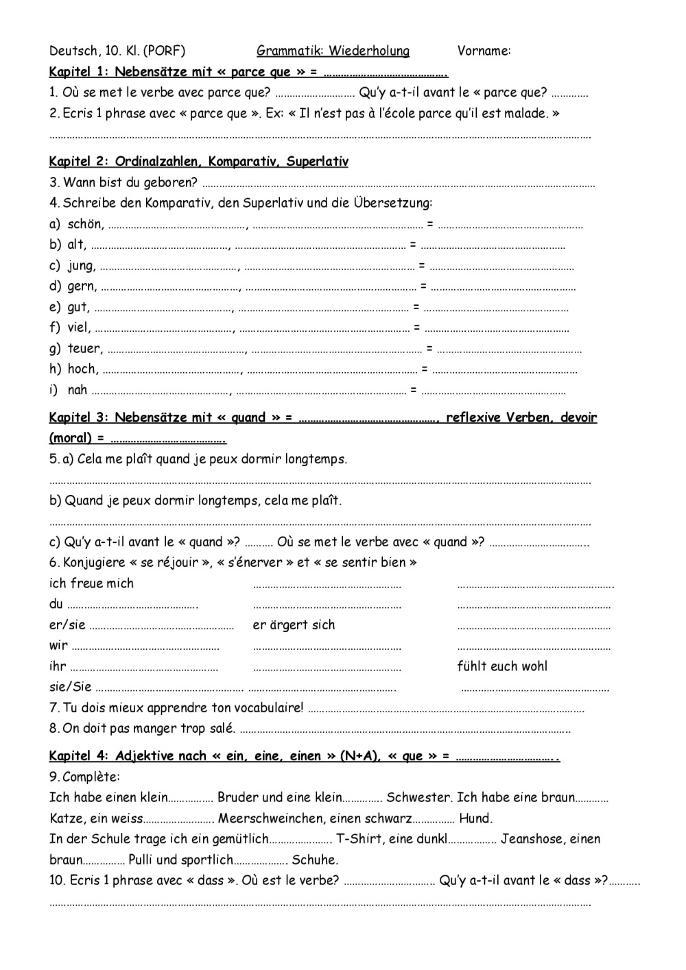 9GK K1-8 Wiederholung der Grammatik Kapitel 1-8, révision de la grammaire des chapitres 1-8, par chapitre.