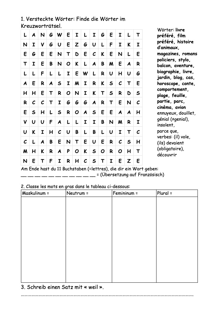 Mot caché en lien avec les unités 6 et 7 de Genialklick 9e, surtout p. 62-63 du Arbeitsbuch. Avec corrigé. TS PO