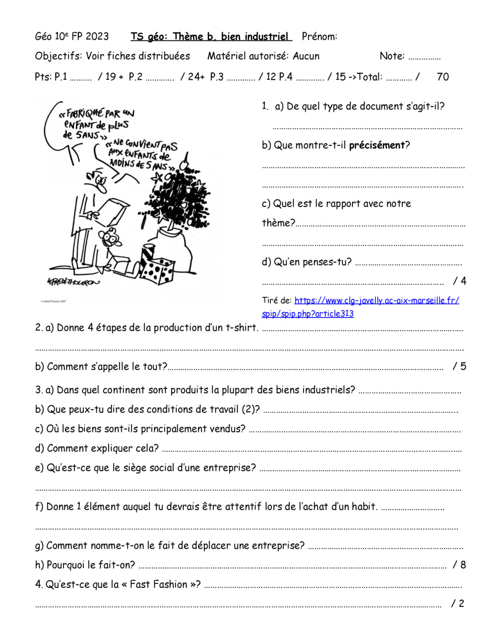 TS fait en octobre 2023 en 9VP. TS trop long (1er rendu après 45min., derniers après 75 min.) 4 à 47.5 pts environ TS 2024 fait en octobre 2024, en 9 VP, temps idéal (premier rendu après 30 minutes les 2 parties), laissé 10 min de plus pour les plus lents. Ne pas copier recto-verso car une partie (...)