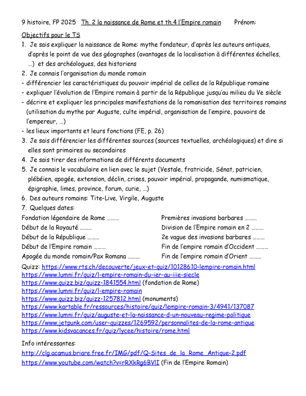 9 histoire, th. 2 et 4, Rome, fondation et empire romain
