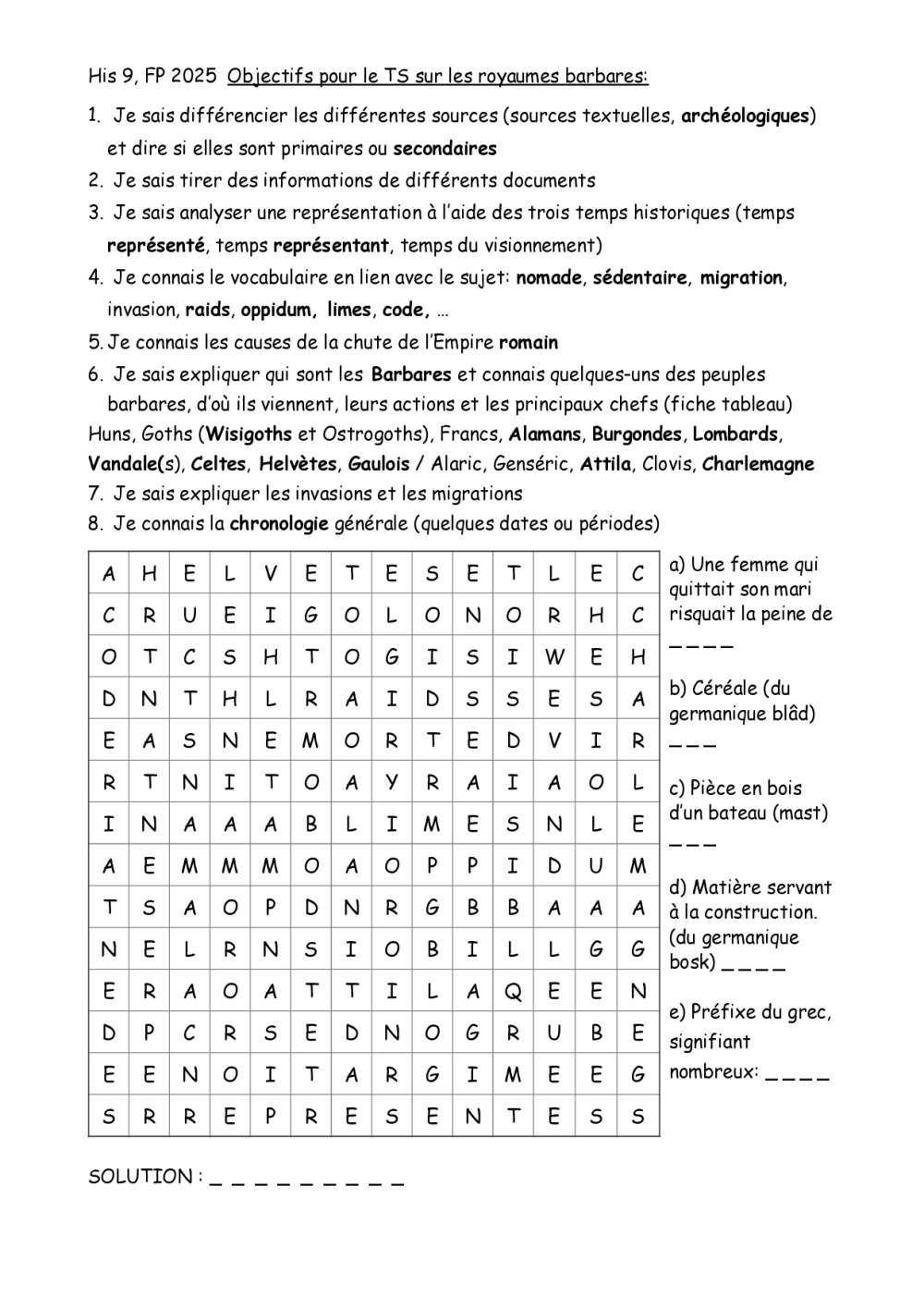 9 histoire, th. 6, les royaumes barbares, Huns, Alamans, Burgondes, Helvètes, ...