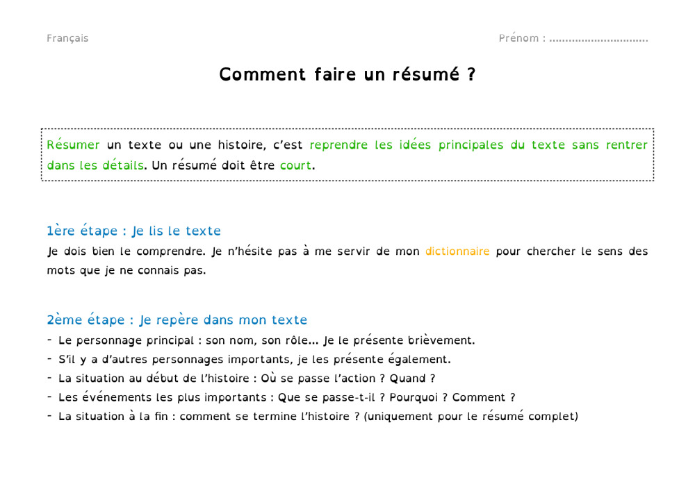 Dans ce dossier, il y a 2 pages théoriques sur comment faire un résumé (texte ou histoire) et ensuite, des pages pour pouvoir rédiger selon les chapitres d'un livre. Ici, il y a 15 chapitres.